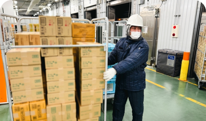 アイスクリーム、氷、冷凍食材など冷凍商品の整理や仕分けを担当します。冷凍庫内であっても安心して働けるように、防寒具や手袋を貸与し、短いスパンで休憩を設けるなどの仕組みをセンターごとに整えています。